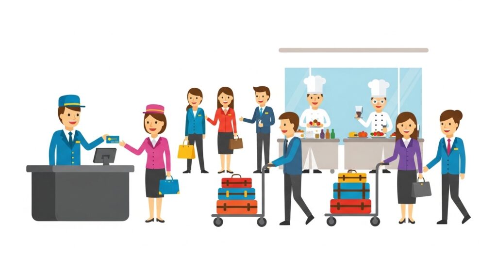 - Common positions include housekeepers, amusement and recreation attendants, restaurant servers, and front desk personnel.